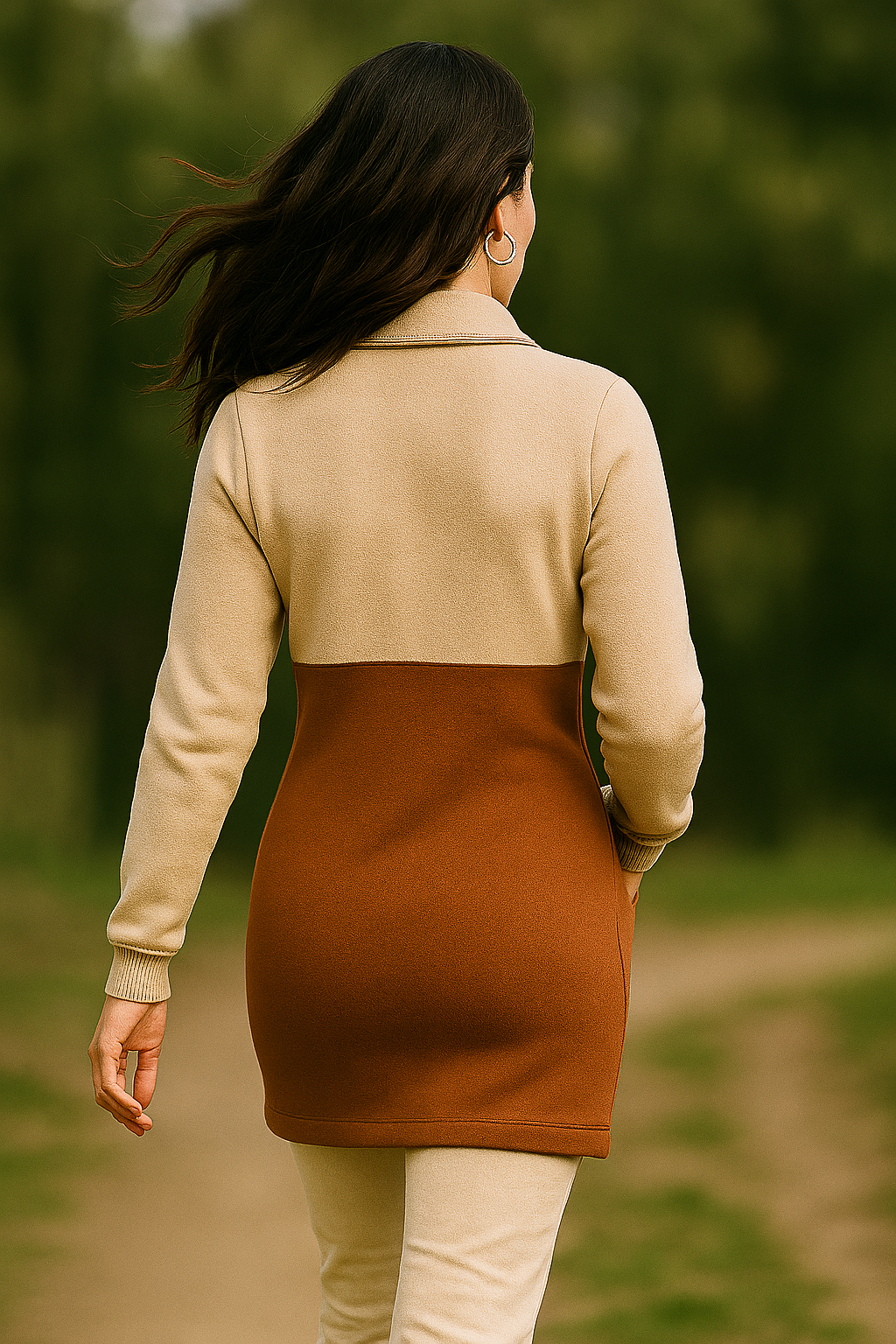 El nuevo vestido sudadera de algodón natural está diseñado para ofrecer comodidad sin esfuerzo, envolviendo el cuerpo con suavidad y acompañando su forma natural. Su silueta equilibrada y sus detalles sutiles lo convierten en una prenda esencial para los días tranquilos, pensada para moverse despacio, habitar el presente y sentirse en casa en la propia piel.